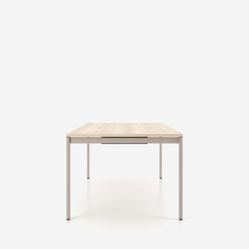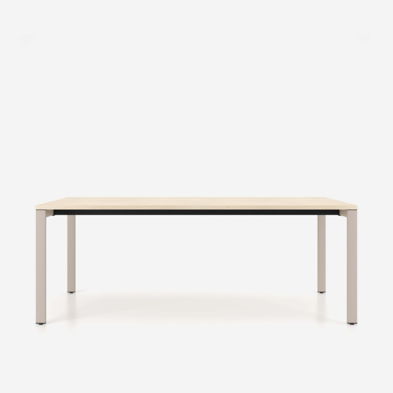 Puhaste joonte ja kerge disainiga koosolekulaud, millel on hele puidutoonis ristkülikukujuline töötasapind. Pulbervärvitud metallraam ja nelja jalaga konstruktsioon tagavad stabiilsuse ning vastupidavuse. Sobib suurepäraselt kaasaegsetesse koosoleku- ja tööruumidesse, kus hinnatakse lihtsust ja funktsionaalsust.