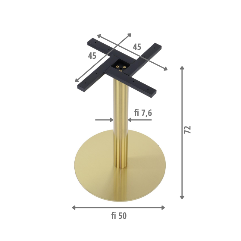 See elegantne ja vastupidav lauajalg pakub stabiilsust ning luksuslikku välimust. Kullatooni roostevaba teras annab modernse ilme, samas kui tugev konstruktsioon ja reguleeritavad jalad tagavad mugava paigalduse ning kindla toe kuivades siseruumides.
