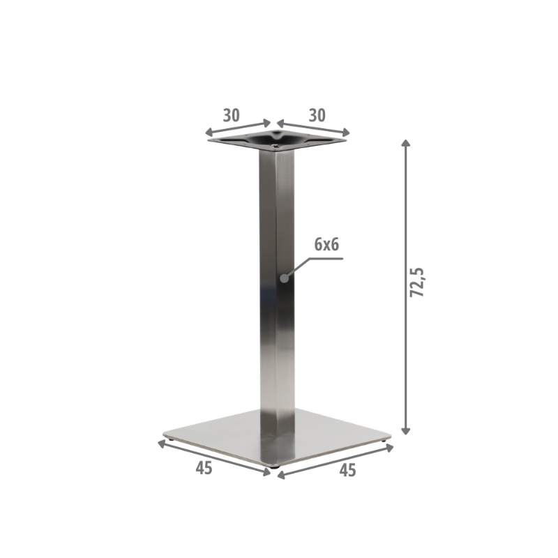 Tugev ja modernne harjatud roostevabast terasest lauajalg, mis pakub stabiilsust ja vastupidavust. Reguleeritavad jalad ning lihtne paigaldus sobivad kuivadesse siseruumidesse.