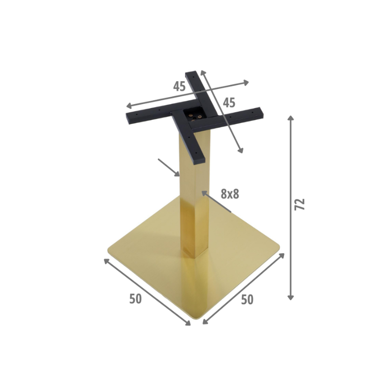 Tugev ja elegantne kuldse viimistlusega lauajalg, mis sobib kasutamiseks kuivades siseruumides. Reguleeritavad jalad ja vastupidav konstruktsioon tagavad stabiilsuse ning lihtsa paigalduse.