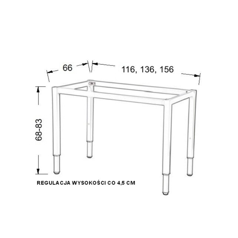 Kõrgus reguleeritav astmeliselt (poldi abil): 68–83 cm
