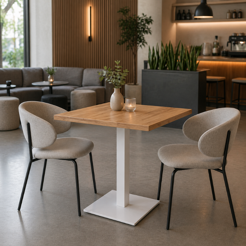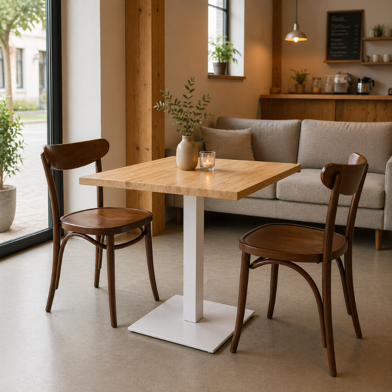 Elegantne valik kohvikutesse, restoranidesse ning muudesse toitlustusasutustesse. Vastupidav teraskonstruktsioon ja täispuidust lauaplaat tagavad stabiilsuse, pika kasutusea ning kvaliteetse välimuse. Antispin-süsteem aitab hoida lauda kindlalt paigal ja vähendab kõikumist.