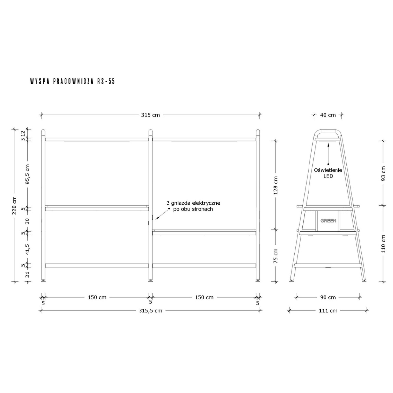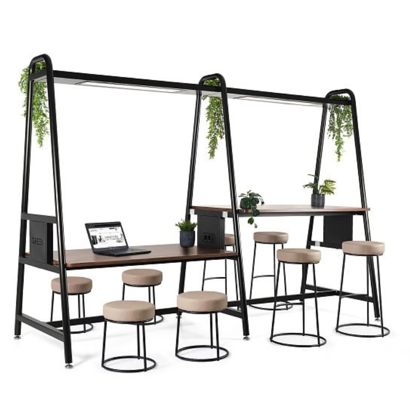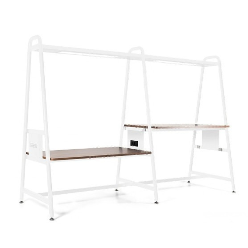 See laud on modernne ja funktsionaalne töökoht kontorisse, salongi või stuudiosse. Kahetasandiline töölaud, integreeritud LED-valgustus ja elektripistikud loovad mugava ning ergonoomilise tööala. Minimalistlik metallraam ja kvaliteetsed tööpinnad muudavad selle töösaarekese vastupidavaks ning stiilseks sisustuselemendiks.