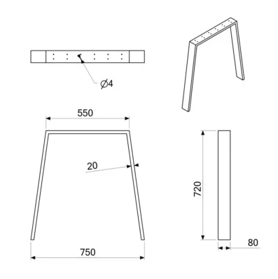 Kriimustuskindel terasjalg Slope on kerge, kuid toetab hästi ka suuremõõtmelist tammepuidust lauaplaati. Konstruktsioon on vastupidav ja stabiilne.