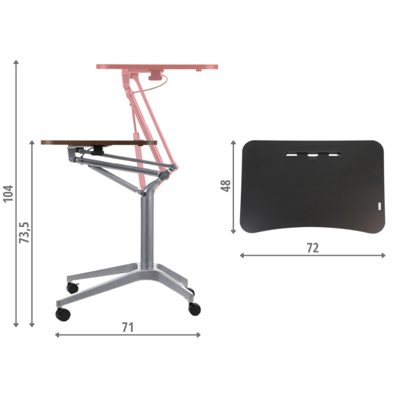 A10 on mobiilne lauaraam (töölaud) sisetingimustesse, mille kõrgust saab reguleerida vahemikus 73,5 kuni 104 cm.