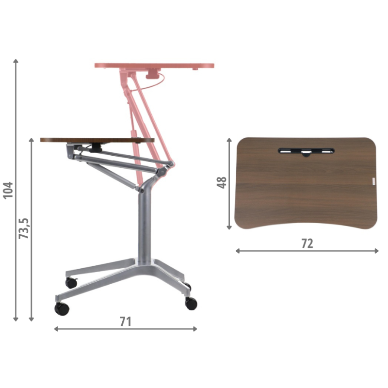 A10 on mobiilne lauaraam (töölaud) sisetingimustesse, mille kõrgust saab reguleerida vahemikus 73,5 kuni 104 cm.