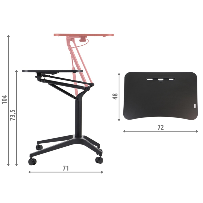 A10 on mobiilne lauaraam (töölaud) sisetingimustesse, mille kõrgust saab reguleerida vahemikus 73,5 kuni 104 cm.