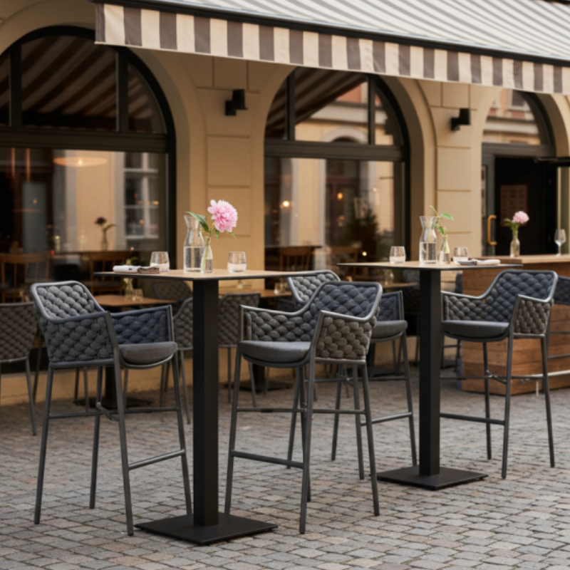 Stiilne ja vastupidav valik terrassidele, baarialadele ning restoranidesse. Kerge alumiiniumraam, ilmastikukindlad materjalid ja mugav kõrgem isteasend muudavad selle praktiliseks igapäevases kasutuses. Sobib suurepäraselt nii modernsesse kui ka klassikalisse keskkonda.