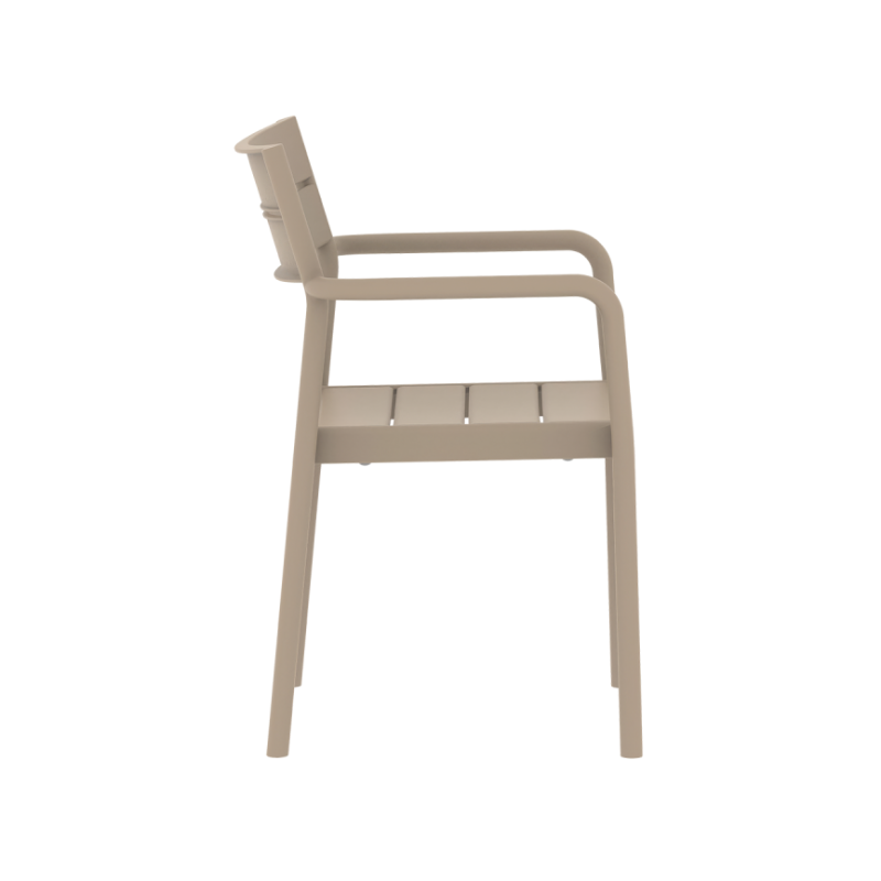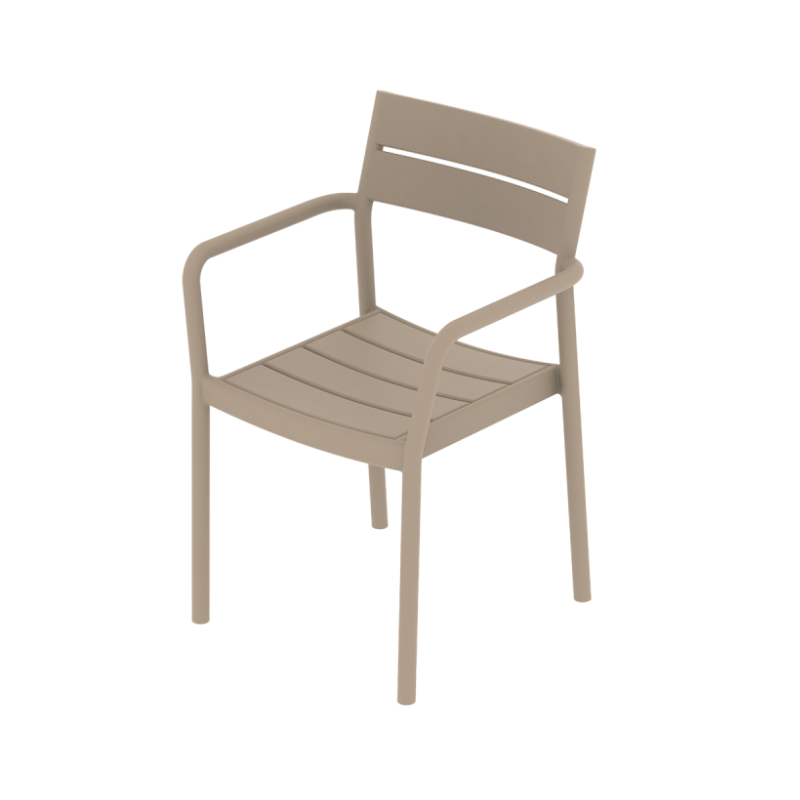Vastupidav ja mugav valik välitingimustesse, sobides ideaalselt restoranide terrassidele, kohvikutesse ja baaridesse. Ühes tükis valmistatud konstruktsioon koos klaaskiuga tugevdatud plastikuga tagab stabiilsuse ja pika kasutusea ka intensiivsel kasutamisel. Integreeritud käetoed lisavad istumismugavust ning UV-kindel materjal võimaldab tooli kasutada kogu hooaja vältel nii väljas kui ka siseruumides.
