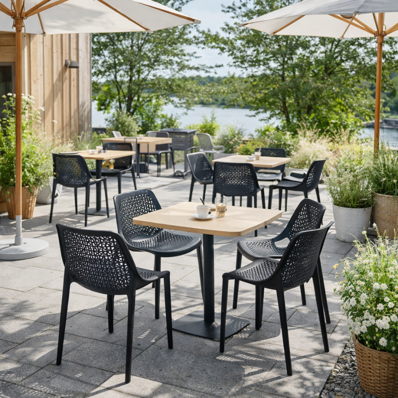 Kõik meie valikus olevad terrassitoolid on mõeldud kasutamiseks avalikele pindadele, mistõttu on tootmisprotsessis mõeldud tihedale kasutamisele.