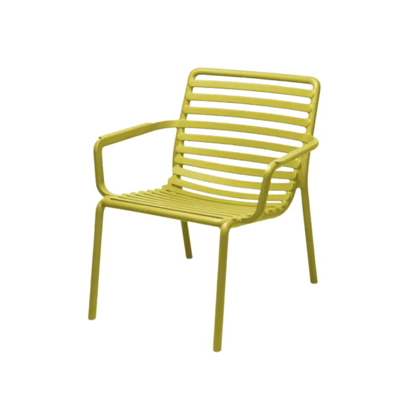 Doga Relax on lõõgastav, suur ja madal käetugedega välitugitool, mis on valmistatud klaaskiuga tugevdatud vaigust. Horisontaalsete liistude rütm loob vahelduse avatud ja suletud pindade vahel, andes toolile kerge ja kaasaegse ilme. Tool on virnastatav, kergesti puhastatav ning täielikult taaskasutatav.