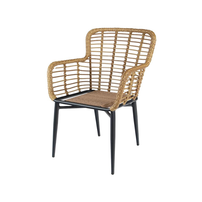 Iste ja seljatugi on kaetud loodusliku tooniga rotangilaadse punutisega, mis on vastupidav ja ilmastikukindel ning säilitab oma ilusa välimuse ka intensiivsel kasutamisel. Ergonoomiliselt vormitud punutis tagab mugava istumisasendi.