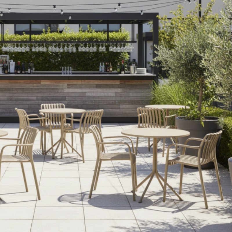 Modernse disainiga vastupidav välitool, mis sobib ideaalselt restoranide terrassidele, õlleaedadesse ja bistroodesse. Kerge, virnastatav konstruktsioon ning ilmastikukindel materjal tagavad mugava kasutuse ja pika eluea ka intensiivsetes tingimustes.