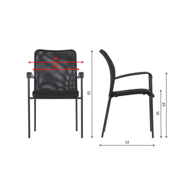Musta raamiga stiilne ja vastupidav tool, mis sobib hästi nii kontorisse, konverentsiruumi kui ka ootealale. Polsterdatud iste ja hingav võrkseljatugi tagavad mugavuse ka pikemal istumisel, samas kui tugev konstruktsioon ja virnastatav disain muudavad selle praktiliseks igapäevaseks kasutamiseks.