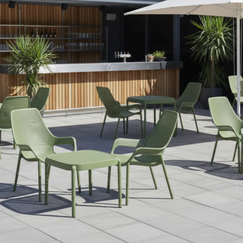 Kompaktne ja kerge välilaud modernse disainiga. Sobib suurepäraselt kohvikuterrassidele, restoranidesse, hotellidesse ja puhkealadele. UV-kindel materjal tagab vastupidavuse välistingimustes ning väike kaal võimaldab lauda hõlpsasti liigutada. Virnastatav konstruktsioon teeb hoiustamise lihtsaks ja praktiliseks.